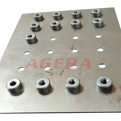 此产品为镀锌板M6圆螺母环凸焊产品,采用安嘉自动化大功率储能凸焊机焊接,配焊接螺母输送机,自动送螺母。焊接效率高,而储能焊机通过充电变压器给大电容充电,再给大功率变压器在很短的内释放出来,输出电流大,热量集中,渗透力强,焊接出来成品外观热影响区小,强度高,质量稳定。