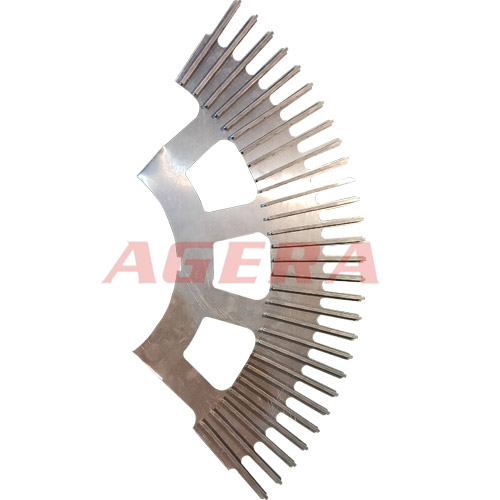 此焊接产品为风电电机槽片凸点焊产品,采用安嘉自动化中频直流逆变点焊机焊接,专用夹具定位焊接,焊接效率高,进口IGBT控制模块将电源频率升至1000HZ,时间ms级控制,次级直流输出,阻抗小,热量集中,焊接强度高,变形小,拉拔试验凸点可拉穿母材。