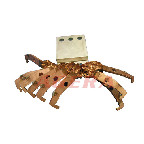此焊接产品是4mm紫铜片和端部成型铜编织袋点焊,采用安嘉动触头片点焊机,设计出和工件吻合的焊接夹具,采用点焊焊接方式焊接而成。以下是焊接此产品的焊机,要了解焊机详情介绍,请点击以下产品图片。