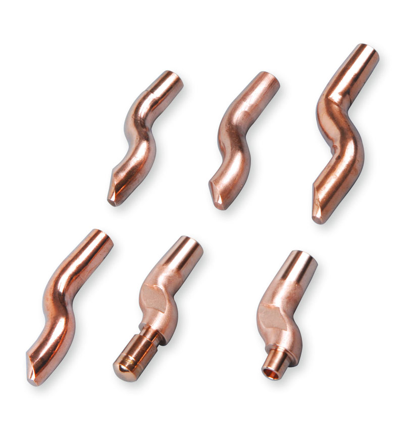 生产的标准电极头、电极帽、异性电极采用了冷挤压工艺及精密机械加工,进一步提高产品的密度,产品性能更加优良、耐用,保证焊接质量稳定。
