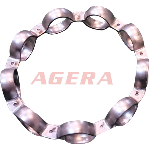此焊接产品为轴承保持支架凸焊产品,采用安嘉自动化中频直流逆变点焊机焊接,专用夹具定位焊接,焊接效率高,进口IGBT控制模块将电源频率升至1000HZ,时间ms级控制,次级直流输出,阻抗小,热量集中,焊接强度高,变形小,拉拔试验凸点可拉穿母材。